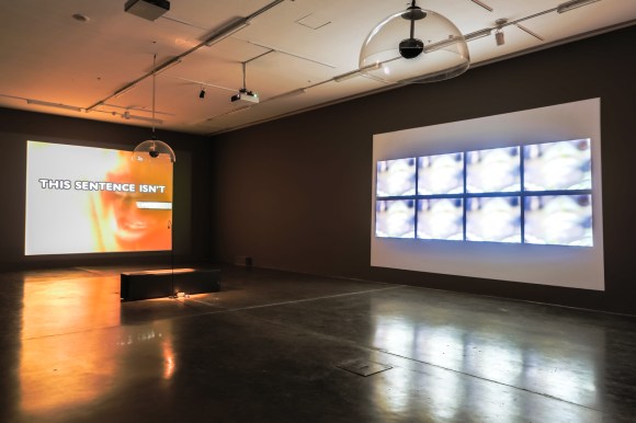 “Many strands unite in The Sounds of These Words, 1990, a piece made – and shown – for tv broadcast as another kind of ‘intervention’, but which demands repeated viewing. Its portrait head is ‘a speaking likeness’ in the realist tradition, but streams of text and sampled sound are used to digitally rescore the typographic revolution of the early modernists, from Marinetti to Cage and concept art, for the age of audiovisual technology and semiotics. The facts that the speaker is audibly a Scot gives the work a precise location and context (it was made for the Glasgow Festival of that year by an artist long resident in Scotland). The fact that the speaker is a woman is also central to the meaning of the video, splitting the logic of the male maker’s gaze and passing the work into the diverse and gendered community of viewers who are its audience.” – Al Rees