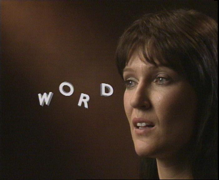 The Sounds of These Words was Partridge’s four minute intervention. For this new work SP used another TV convention – the talking head – one of the most ubiquitous images on television. Here some of the statements made by the woman are displayed on the screen as text which is then animated and manipulated. An extreme close-up of the mouth speaking is slowed down, almost to a stop, and then speeded up to a fast rate so that the appreciation of the lips forming the words is heightened. The play between the spoken word, the animated text and the act of speaking are brought together with an assured and telling touch. The English language is capable of great subtlety and we have many and various way of expressing what we wish to say compared with other languages. We measure our words carefully not always just to be truthful (or not) but to shape them according to how we think they may be received. For me The Sounds of These Words brings these questions into sharp focus.” – Anna Ridley