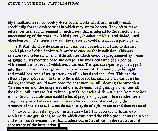 8 x 8 x 8, 1976. Video installation for 8 monitors, and 8 cameras, commissioned for The Video Show, Tate Gallery, London, and exhibited from 18 May to 16th June, 1976.