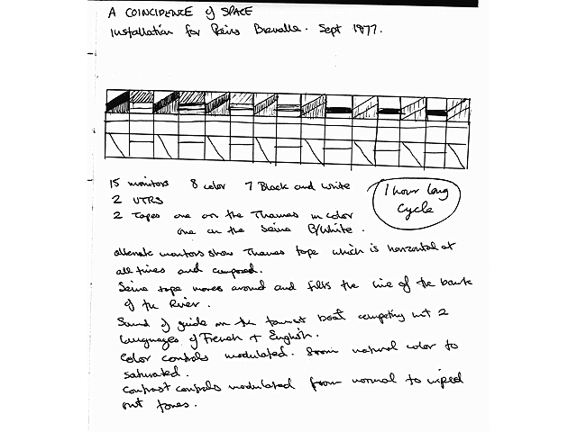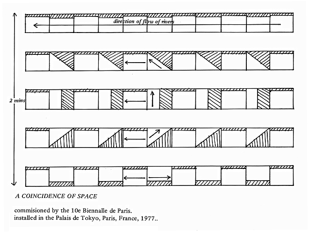 A coincidence of space 1977. ▶︎ A 2 channel video installation, 10 x monitors for ‘Paris Biennalle’, Palais des Tokyo, Paris, France