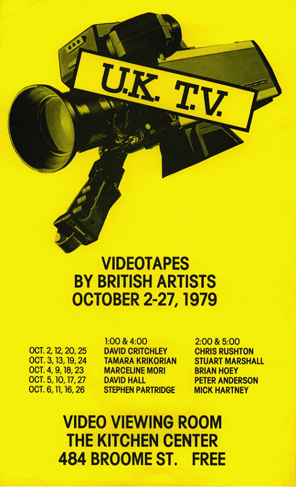 UK TV, a selection of British artists’ videotapes for The Kitchen, New York in 1979.